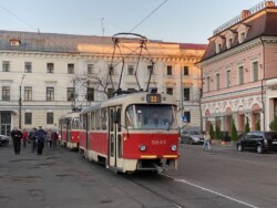 Not many old vehicles run on Sundays but we managed to charter the “historic” Kyiv-12.05 trolleybus. Weekdays see more services operate.