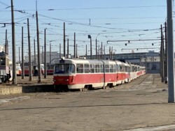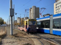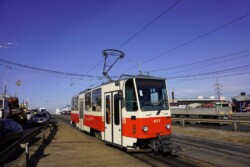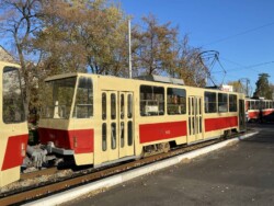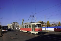 We started our trip in the capital and we ended it there. We were not successful to find the new low floor #5001 car when we had arrived but it did run now. We managed a ride on it on line 28 but then later the car disappeared. The track connection to the Darnyts’kyi depot is under reconstruction (one track seems available for pull ins and pool outs) and we later discovered the car together with many others sitting in the line 4 northern loop waiting for the evening rush. With the sun rapidly disappearing we managed to see the whole collection of trams run on the fast tram on the right bank in order to loop round at one of the southern loops (probably the first one) to rejoin their lines 28 and 35 (no passengers were carried). It was interesting to see all these different types of trams run on the fast tram, normally they do not go here at all! On the last day we went to Darnyts’kyi depot but not much was running there (all the interesting cars were operating from Lisova metro station going north only). A bus replacement line 33T operated some distance away from the depot to bring passengers north. We look forward to our next visit to Kyiv and Ukraine (we will probably do the Western part of the country again including Odesa): but certain systems do need a repeat visit as well (Poltava, Dnipro, Kamianske, Kryvyj Rih…).