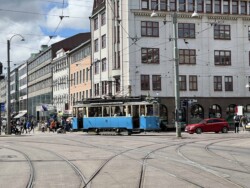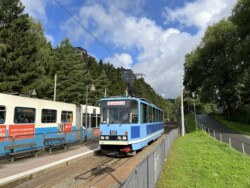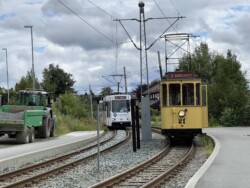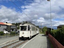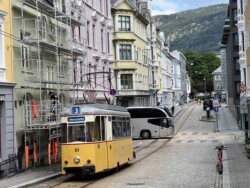 Flying to Trondheim we had already seen the new light rail system during a short stop-over here. Returning ahead of the VDVA group (which travelled the long way via Oslo by rail) we explored both lines of this light rail system. Unfortunately the trolleybus line was suspended (replaced by buses) and we saw not a single vehicle. The museum tramway and the technical museum was very much enjoyed by everyone. We also went on the Flyoibanen funicular. The weather both in Trondheim and Bergen was fairly good, with just a few showers (it rains a lot in Bergen) and many lenghty sunny spells.