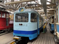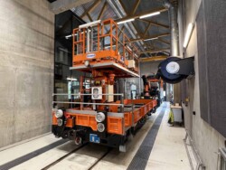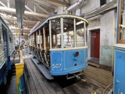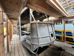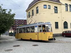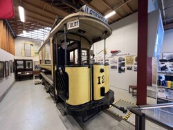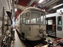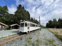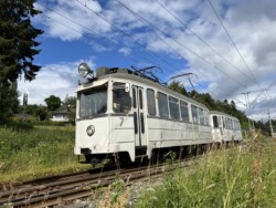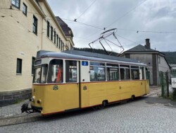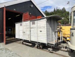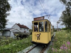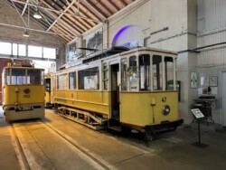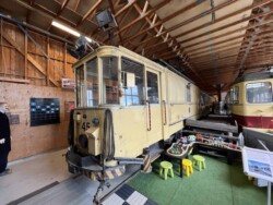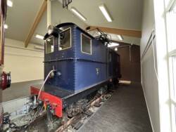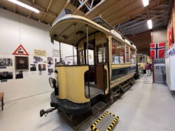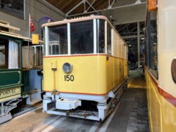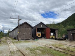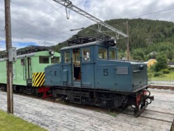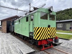 This electric railway is situated near Trondheim. It was Norways first electric railway (it did carry some passengers until 1963 but the main purpose was always carrying ore). It closed in 1974. Since 1983 it is a museum line. Unfortunately the line was not running when we visited it – they hope to re-open to the public in June 2024. They moved some of the equipment out for us with a diesel shunter and we managed to see all the equipment they have. The line and specially the depot (and adjoining industrial museum – apart from the original car sheds everything is brand new) has been heavily modernised in recent years. Only one passenger motor car survives (the “King’s Car” – originally the private car of the line’s owner Christian Thams) together with three passenger trailers. Various electric locomotives and freight wagons (many ore cars) are on show.