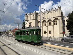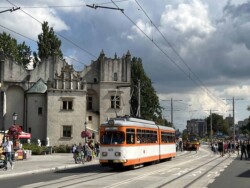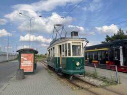 The re-opening of line 41 to Pabianice was celebrated with a parade (many weeks after services had resumed). We also visited a private collection of Lodz trams north of the city.